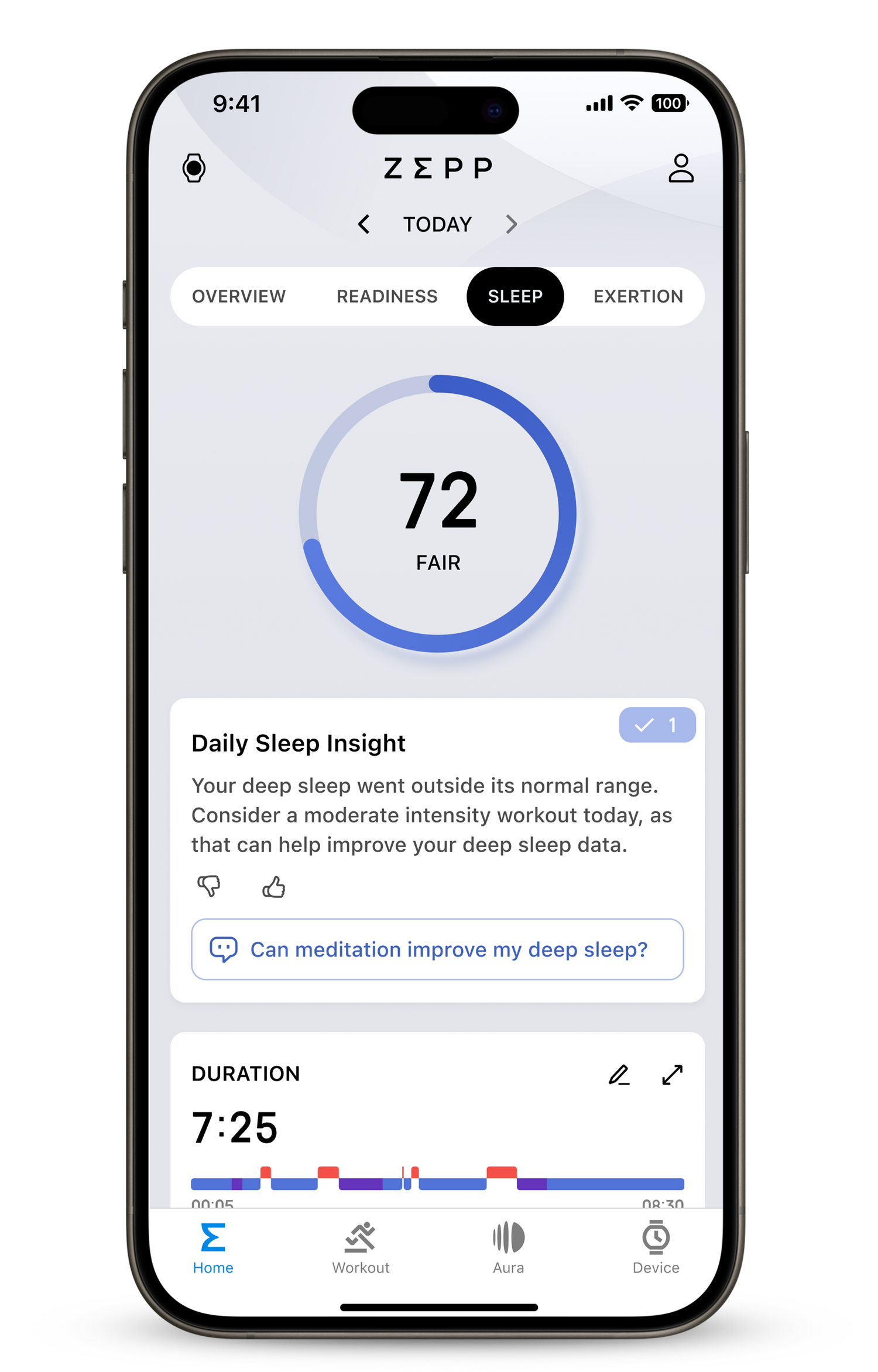 Mit der benutzerfreundlichen kostenlosen App von Zepp können Sie Ihr Amazfit-Gerät von Ihrem Telefon aus steuern.