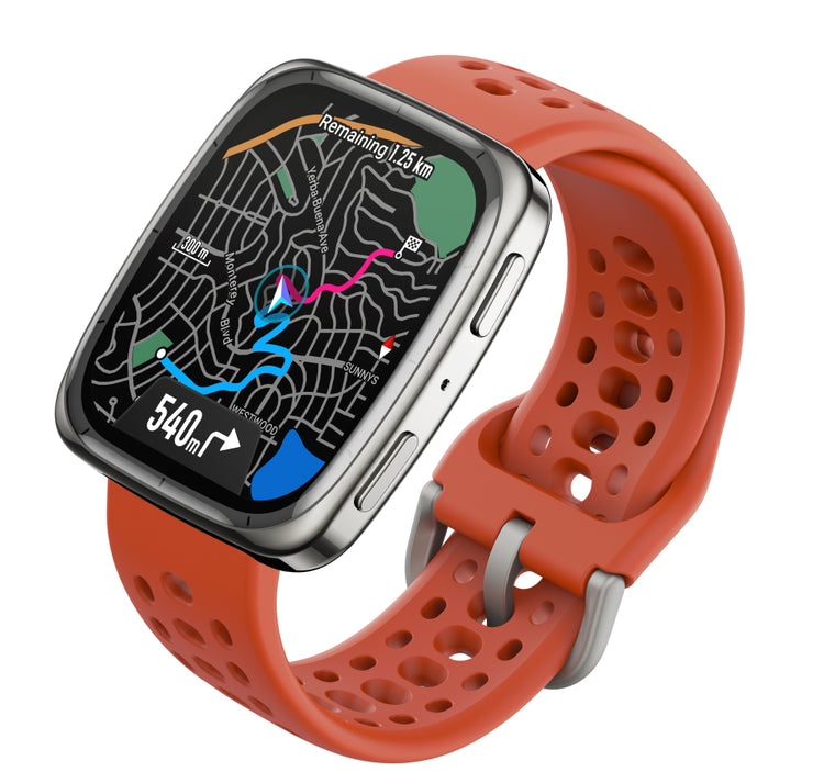 Das AMOLED-Display erreicht eine Spitzenhelligkeit¹ von 2.000 Nits und bietet so eine außergewöhnliche Sichtbarkeit bei allen Lichtverhältnissen, sodass Sie Ihre Daten, Karten und Benachrichtigungen auf einen Blick erkennen können.