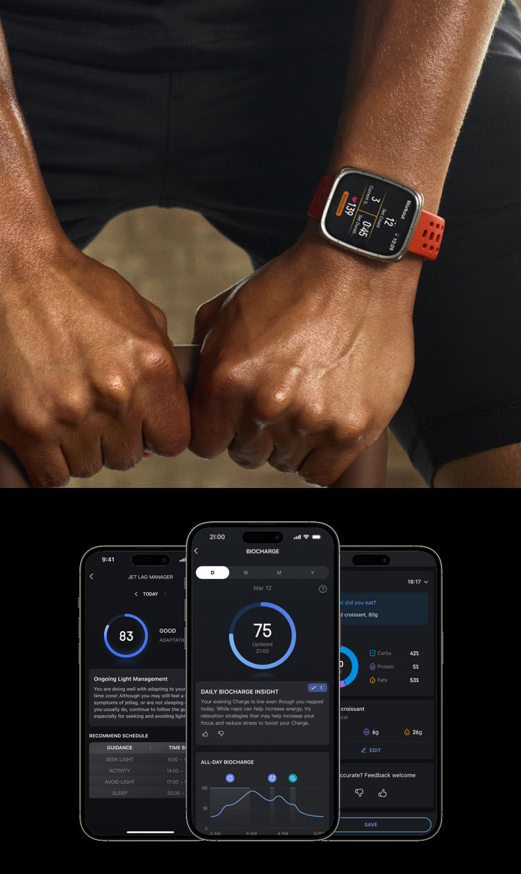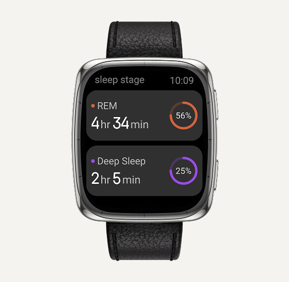 - Überwachung der Schlafqualität: Herzfrequenzvariabilität im Schlaf, Schlafphasen (einschließlich REM), Nickerchen am Tag, Schlafplan, Atmungsqualität im Schlaf, Schlafindex