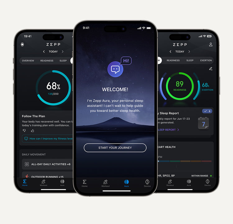 15. Einige Aspekte von Zepp Aura sind kostenlos, darunter personalisierte Schlafmusik, Meditationsunterstützung und eine Nachricht pro Tag an den KI-Schlafcoach-Chatbot. Das Zepp Aura Premium-Abonnement, das gegen eine monatliche oder jährliche Gebühr erhältlich ist, fügt spezielle wöchentliche und monatliche Schlafberichte und unbegrenzte Nachrichten an den KI-Schlafcoach hinzu. Zepp Aura ist nicht in allen Ländern und Regionen verfügbar, und seine Inhalte und alle bereitgestellten Informationen dienen ausschließlich Bildungszwecken und sollten nicht als Ersatz für professionellen medizinischen Rat angesehen werden. Konsultieren Sie immer einen qualifizierten Arzt, wenn Sie medizinische Hilfe suchen. Weitere Informationen zu Zepp Aura finden Sie hier: https://aura.zepp.com/
