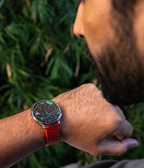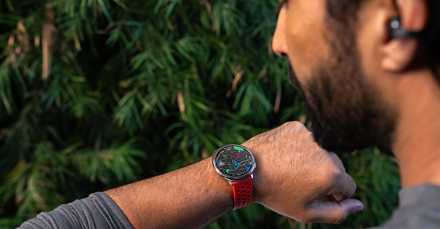Beleuchten Sie Ihren Fortschritt mit dem lebendigen AMOLED-Display, das für optimale Lesbarkeit ausgelegt ist – selbst bei direkter Sonneneinstrahlung¹ . -