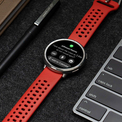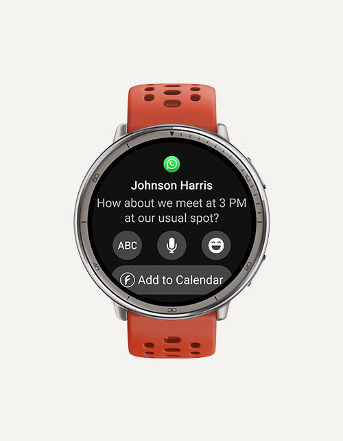 Mit Zepp Flow™ können Sie Android-Nachrichtenantworten ¹³ über eine vollständige QWERTZ-Tastatur eingeben oder Ihre Antwort für die Spracherkennung diktieren. Zepp Flow™ optimiert Ihre Antwort intelligent mit Vorschlägen oder Übersetzungen und sendet sie nahtlos. -