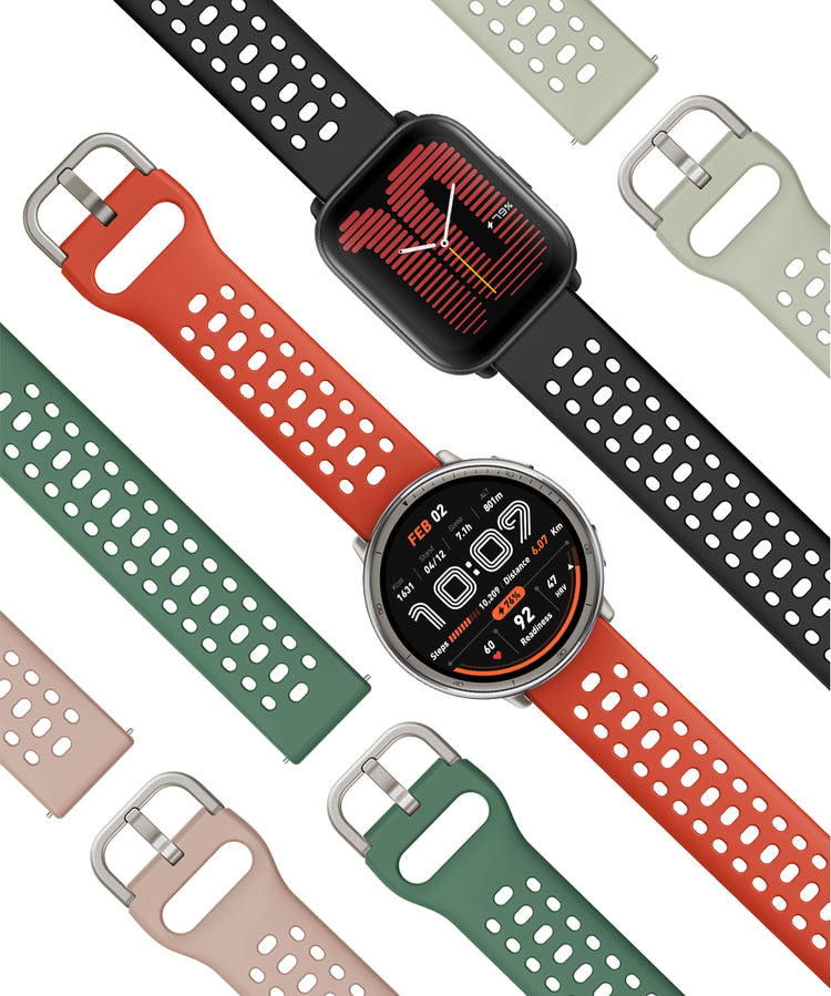 Amazfit Active 2, Amazfit Active, Amazfit GTS 4, Amazfit GTR Mini, Amazfit GTS 4 Mini und andere Amazfit Smartwatches mit einer Armbandbreite von 20 mm.