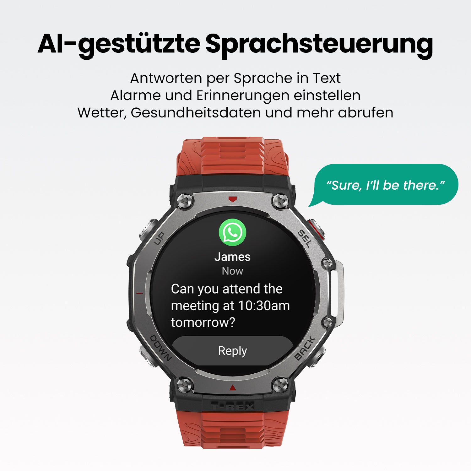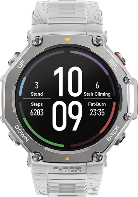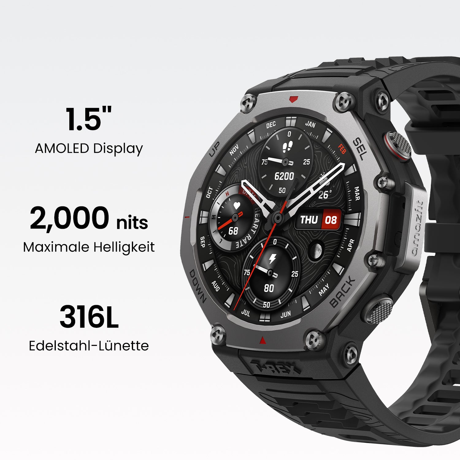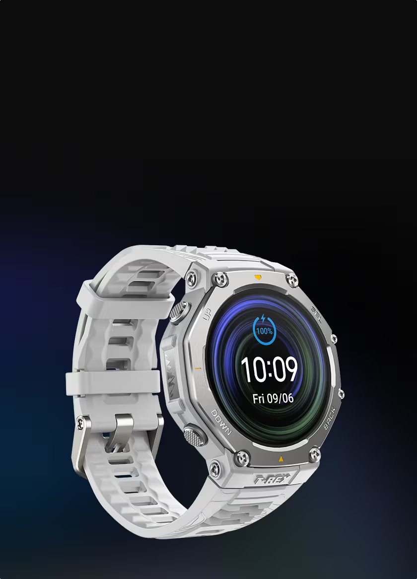 Mit seinem supergroßen, hellen Display und dem Gehäuse in Militärqualität¹ ist das Amazfit T-Rex 3 für jede Herausforderung bereit, die Sie sich stellen.