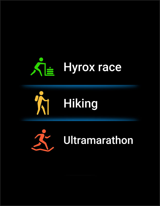 Von Ultramarathon und Triathlon bis hin zu Jagen und Angeln. Wählen Sie aus einer riesigen Palette an Trainingsmodi mit Daten auf professionellem Niveau.