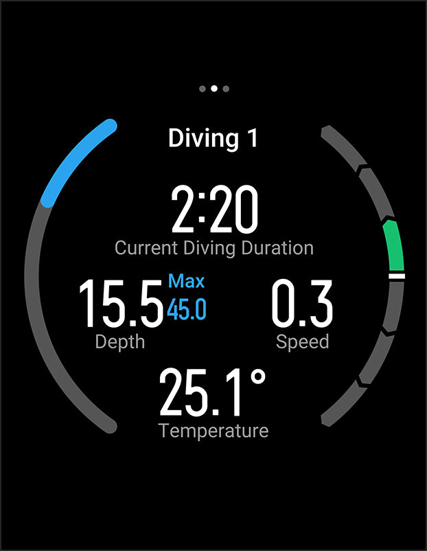 Das Uhrengehäuse und das Standardarmband sind für Freitauchen bis zu einer Tiefe von 45 Metern zertifiziert⁹ und das superhelle AMOLED-Display sorgt dafür, dass wichtige Daten unter Wasser gut sichtbar sind.