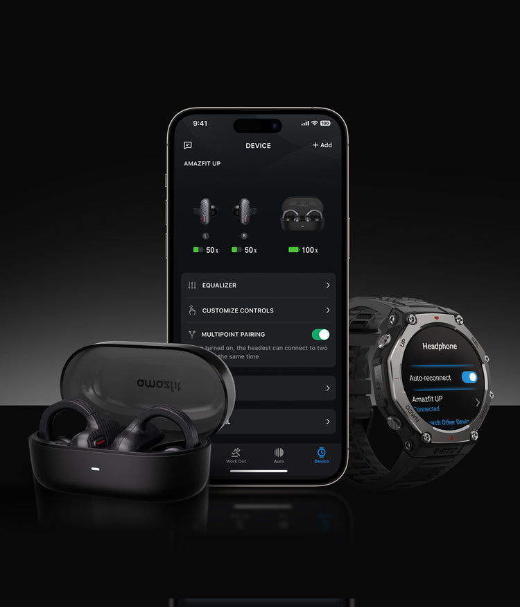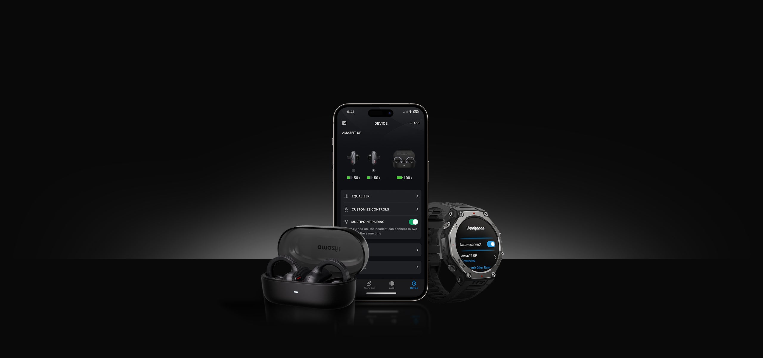 Unabhängig davon, ob Ihre bevorzugten Audiogeräte mit iOS, Android oder Windows laufen, kann Amazfit Up sich gleichzeitig mit zwei davon verbinden und nach Bedarf zwischen ihnen wechseln.