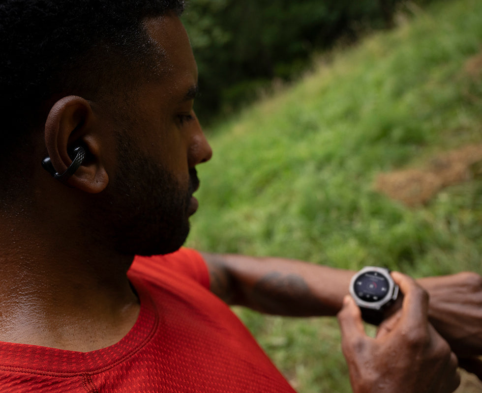 Erhalte Trainingsdaten und Richtungsangaben³, die von deiner verbundenen Amazfit-Uhr direkt in dein Ohr übertragen werden.