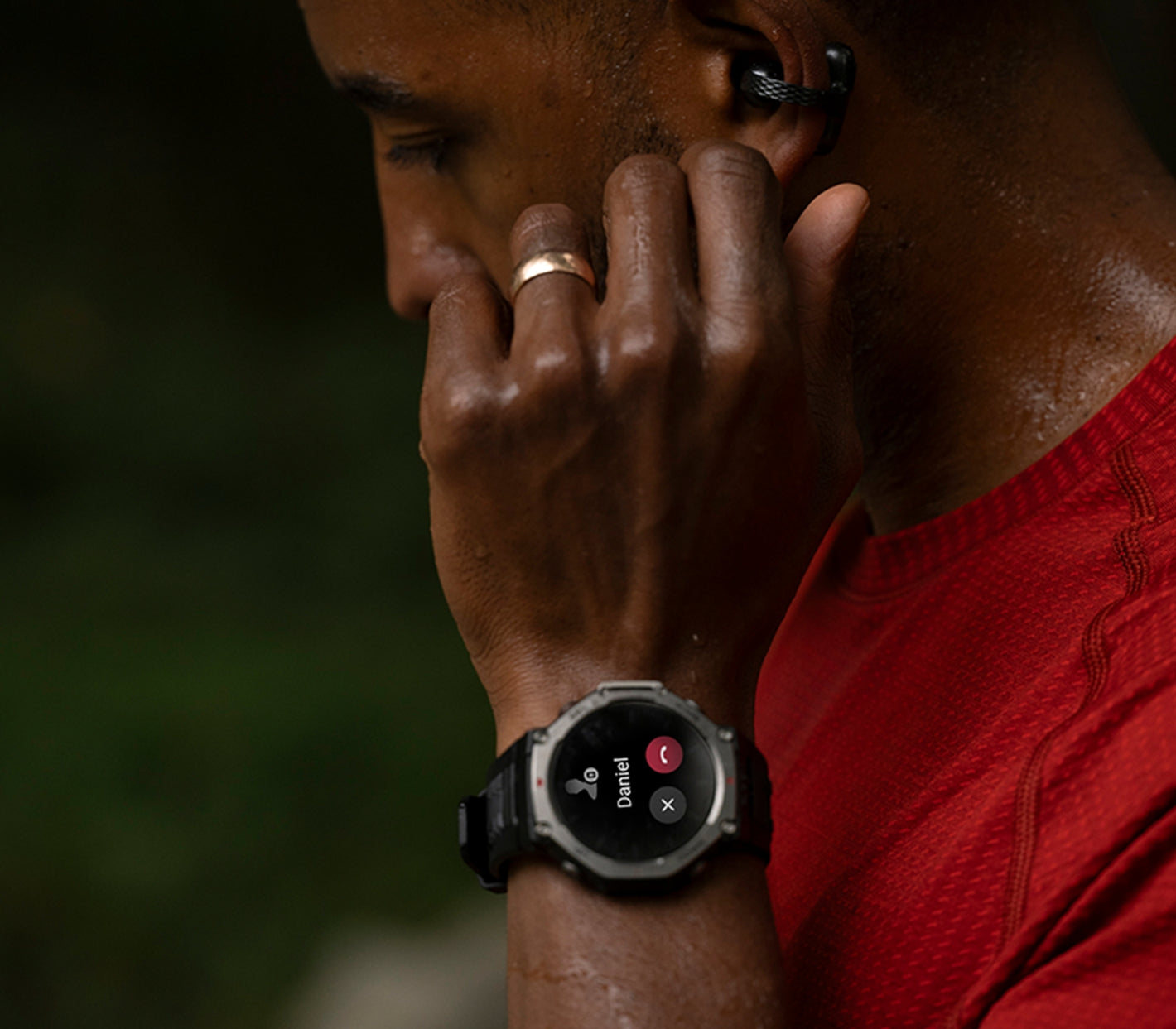 Stecken Sie Ihr Telefon in Ihre Tasche und tragen Sie eine Amazfit-Uhr, die Bluetooth-Anrufe unterstützt⁷. Alle eingehenden Anrufe werden an Ihre Uhr weitergeleitet und Sie können sie ganz einfach durch Antippen Ihres Ohrhörers beantworten.