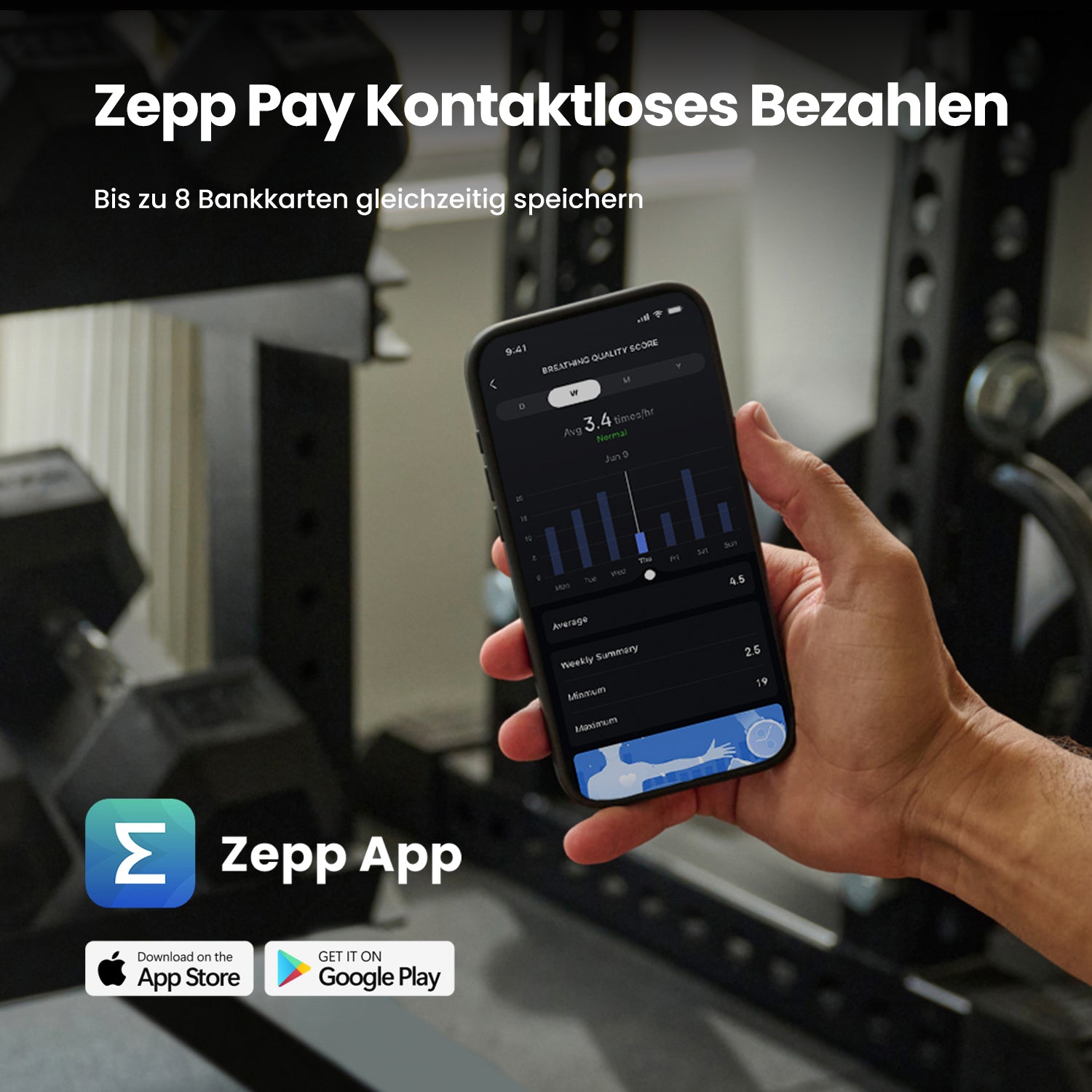 13. Zepp Pay wird von Curve und teilnehmenden Emittentenbanken in 31 Ländern unterstützt: Österreich, Belgien, Bulgarien, Kroatien, Zypern, Tschechische Republik, Dänemark, Estland, Finnland, Frankreich, Deutschland, Griechenland, Ungarn, Island, Republik Irland, Italien, Lettland, Liechtenstein, Litauen, Luxemburg, Malta, Niederlande, Norwegen, Polen, Portugal, Rumänien, Serbien, Slowakei, Slowenien, Spanien, Schweden, Schweiz und Vereinigtes Königreich. Weitere Informationen zu Zepp Pay finden Sie hier: Zepp Pay. Bitte lesen Sie die Datenschutzrichtlinie von Zepp Pay hier: https://t.zepp.com/t/5ad6e, und die Benutzervereinbarung hier: https://t.zepp.com/t/4c7d4. Bei Fragen kontaktieren Sie uns bitte unter privacy@zepp.com.