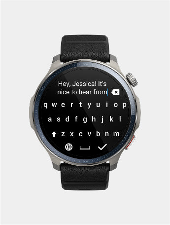 Geben Sie Android¹¹ Nachrichtenantworten über eine vollständige QWERTZ-Tastatur ein oder diktieren Sie sie per Spracherkennung. Zepp Flow™ optimiert Ihre Antwort mit Vorschlägen oder Übersetzungen und sendet sie nahtlos. -