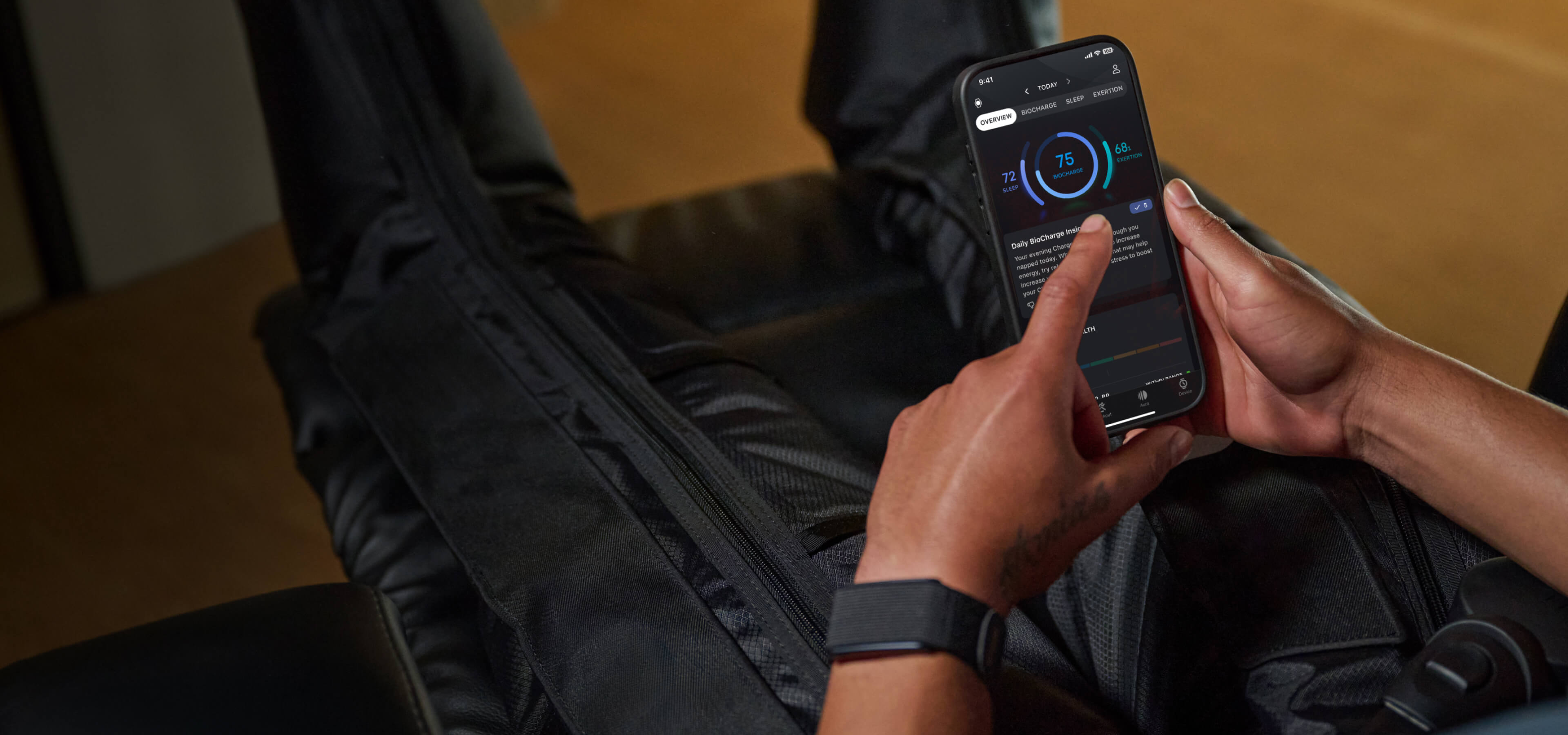 - Überwachung der Schlafqualität: Herzfrequenzvariabilität im Schlaf, Schlafphasen (einschließlich REM), Nickerchen am Tag, Schlafplan, Atmungsqualität im Schlaf, Schlafindex