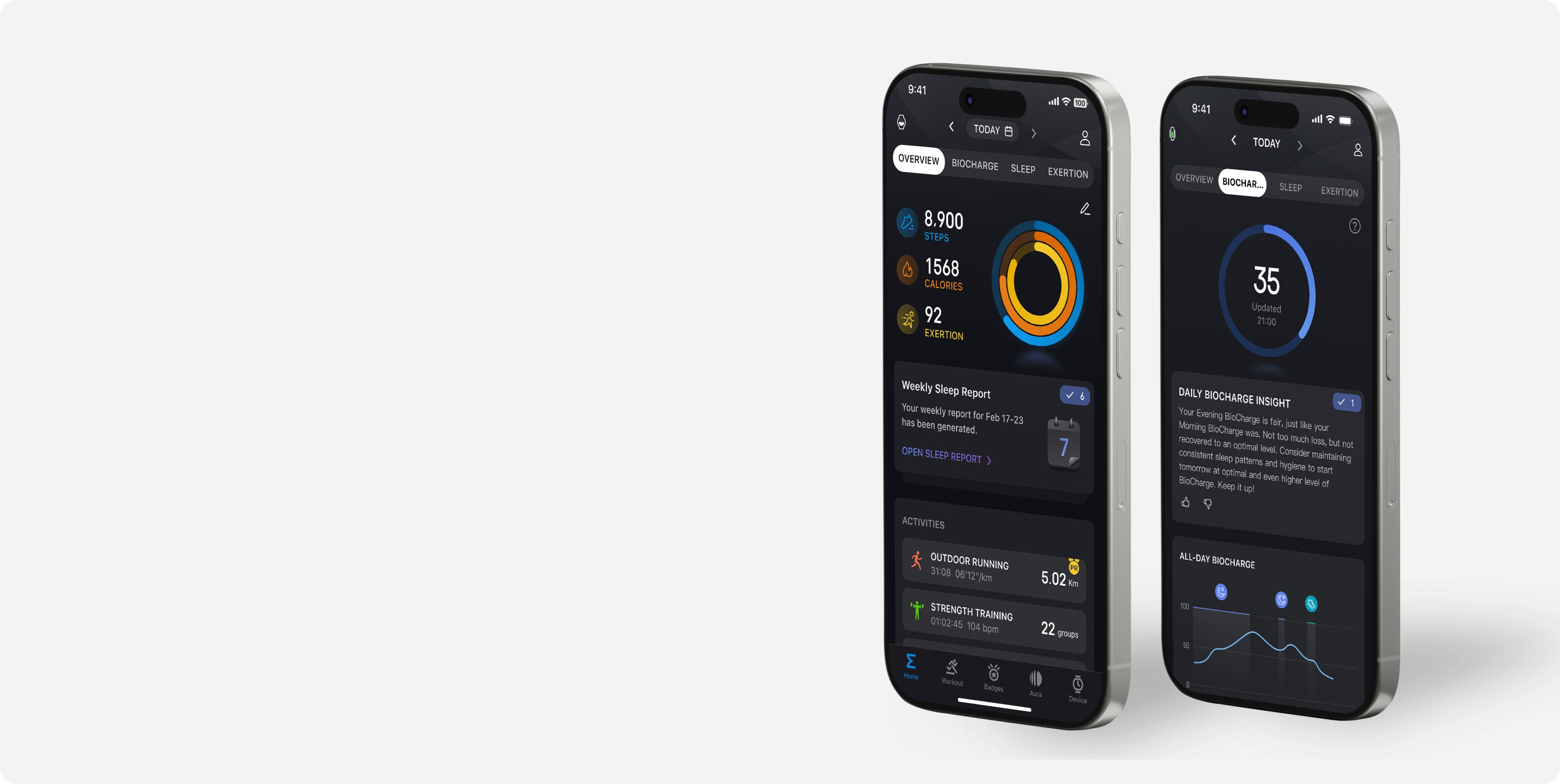 Ab dem Moment, in dem Sie nach einer erholsamen Nacht aufwachen, passt sich Ihr BioCharge ™-Wert an Ihre täglichen Trainingseinheiten, Aktivitäten und Ihr Stressniveau an. -