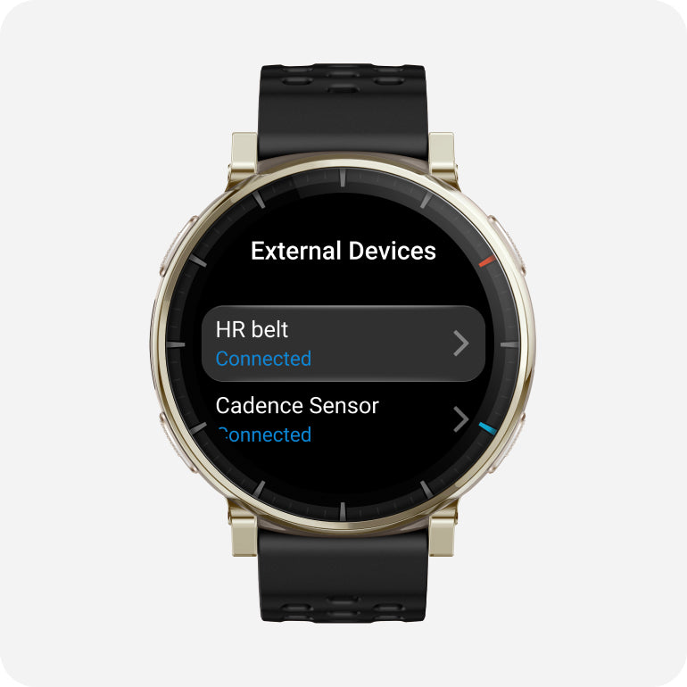 8. Die Verbindung zu Bluetooth-Peripheriegeräten unterstützt nur Geräte mit BLE-Verbindung. Zu den unterstützten Geräten gehören: Herzfrequenzgurte, Leistungsmesser, Trittfrequenzmesser, Fahrradtachos und Thermometer.