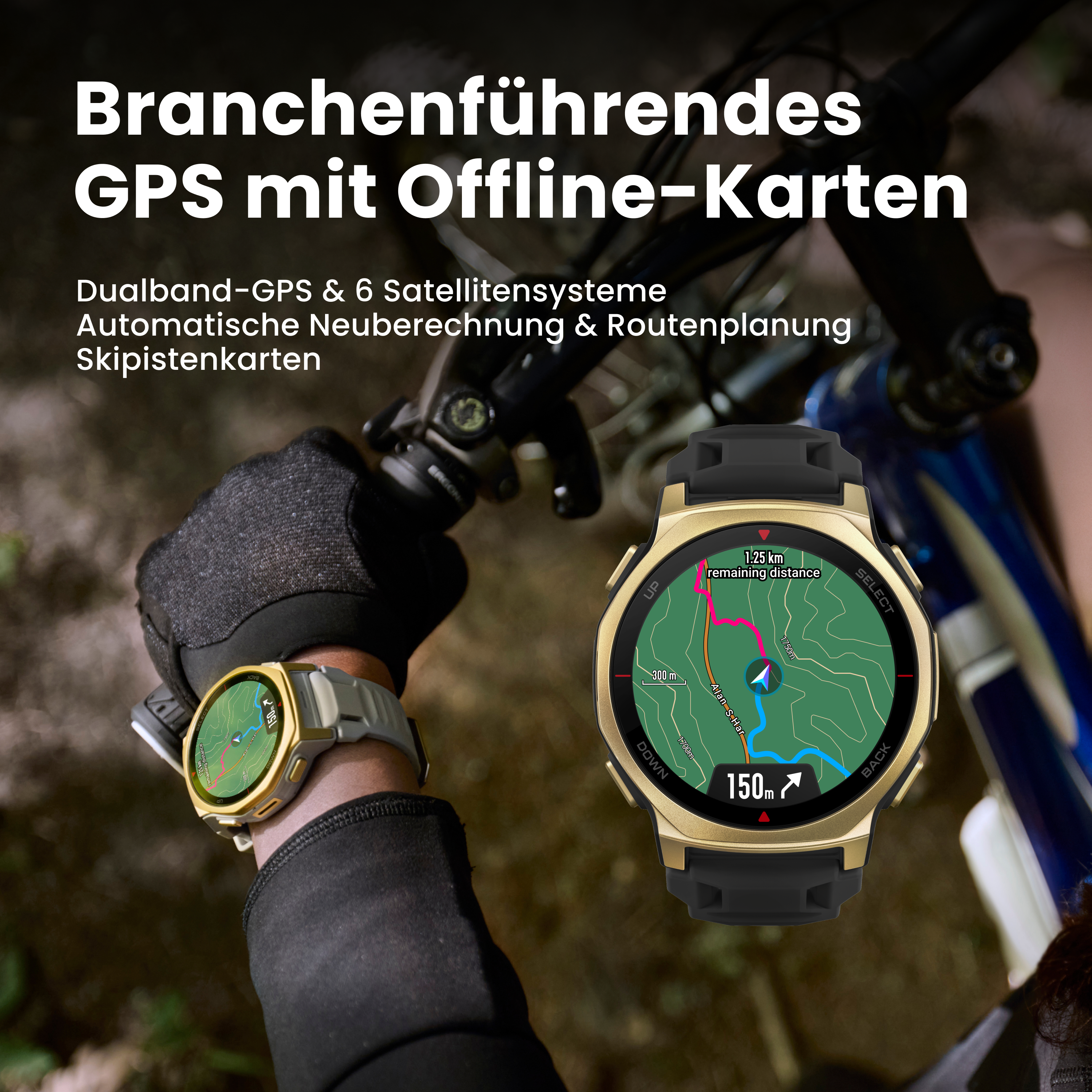 Verfolgen Sie jede Bewegung präzise, selbst unter hohen Gebäuden oder dichtem Baumbestand. Die Dualband-Unterstützung von sechs Satellitensystemen ⁵ sorgt für eine schnelle, zuverlässige Verbindung – ideal für anspruchsvolle Outdoor-Abenteuer, von schroffen Wanderungen bis hin zu intensiven Trail-Rennen.